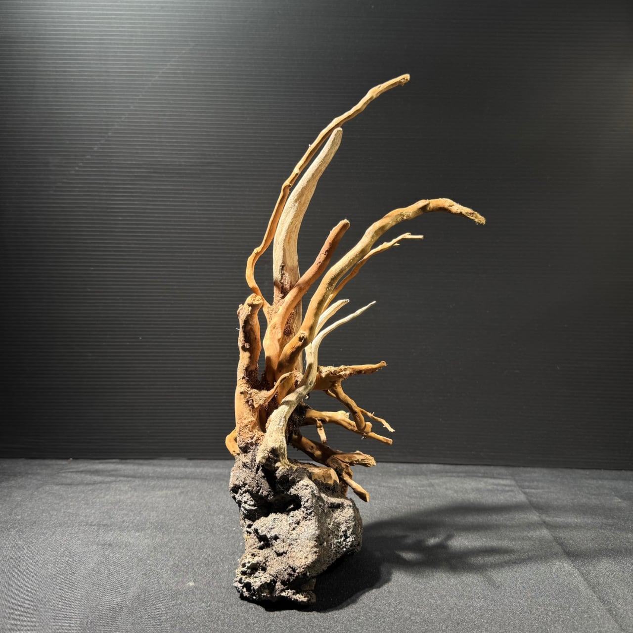 複数の溶岩石と枝状流木を組み合わせた完全一点物
