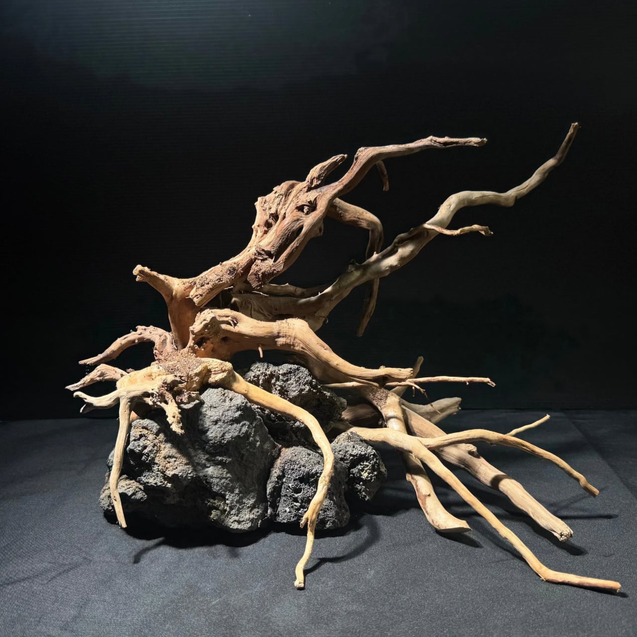 複数の溶岩石と枝状流木を組み合わせた完全一点物