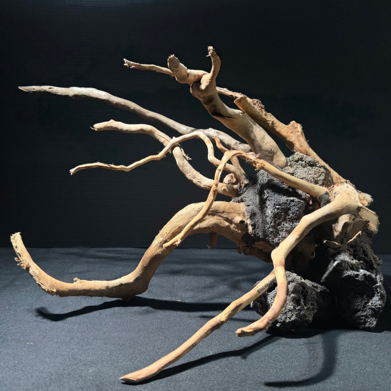 複数の溶岩石と枝状流木を組み合わせた完全一点物