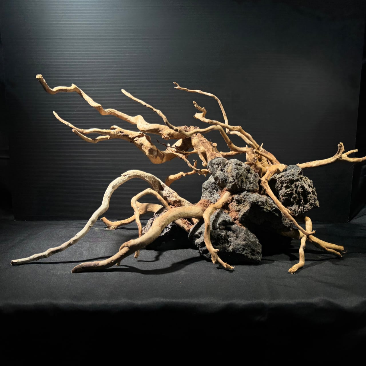 複数の溶岩石と枝状流木を組み合わせた完全一点物