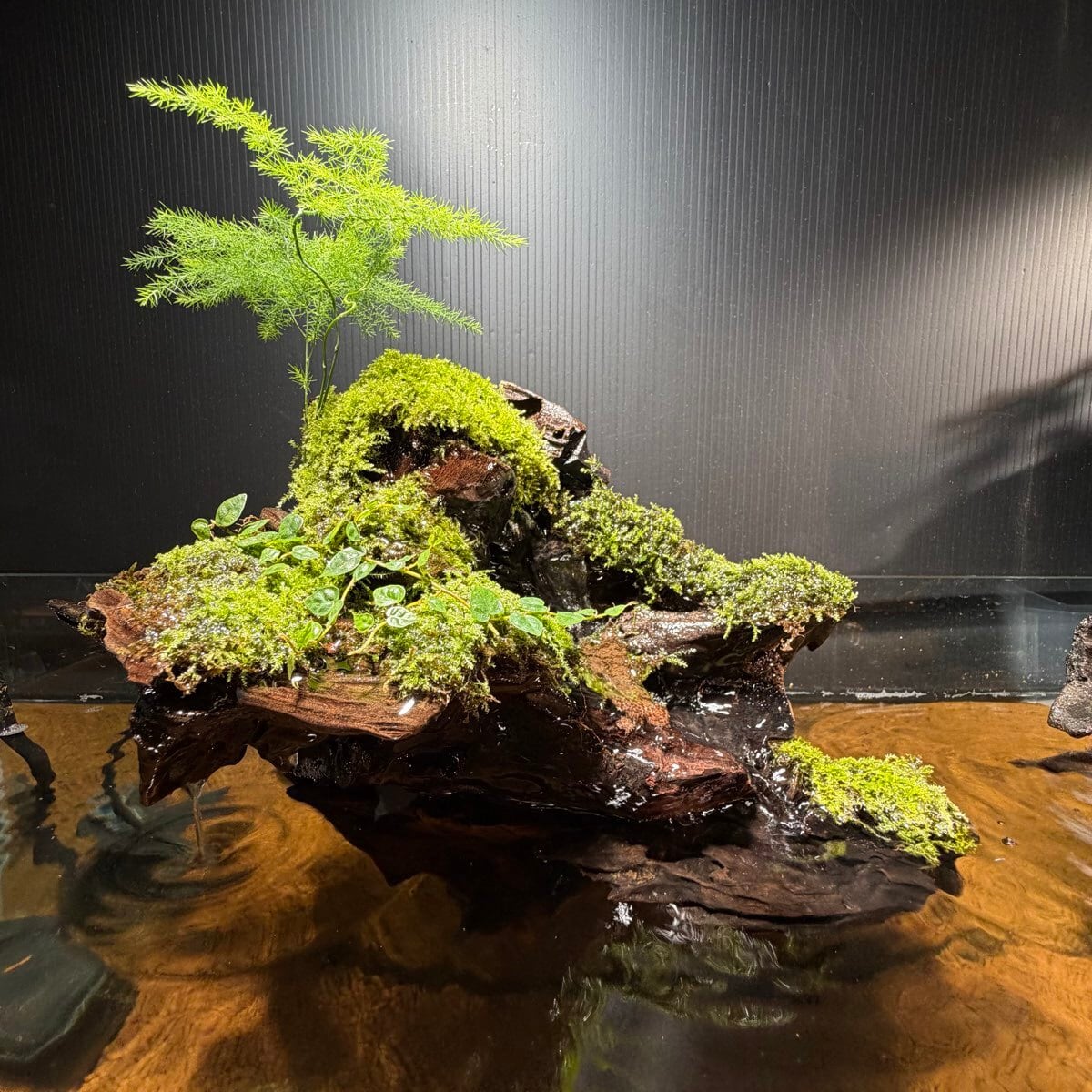 陸上部分の苔や植物には、必要に応じて霧吹きを行ってください。
