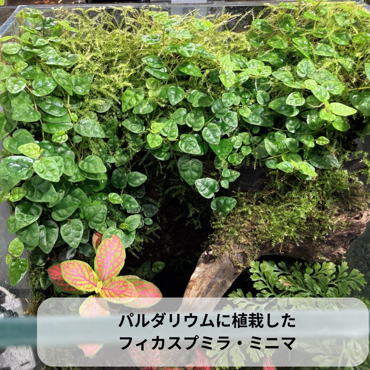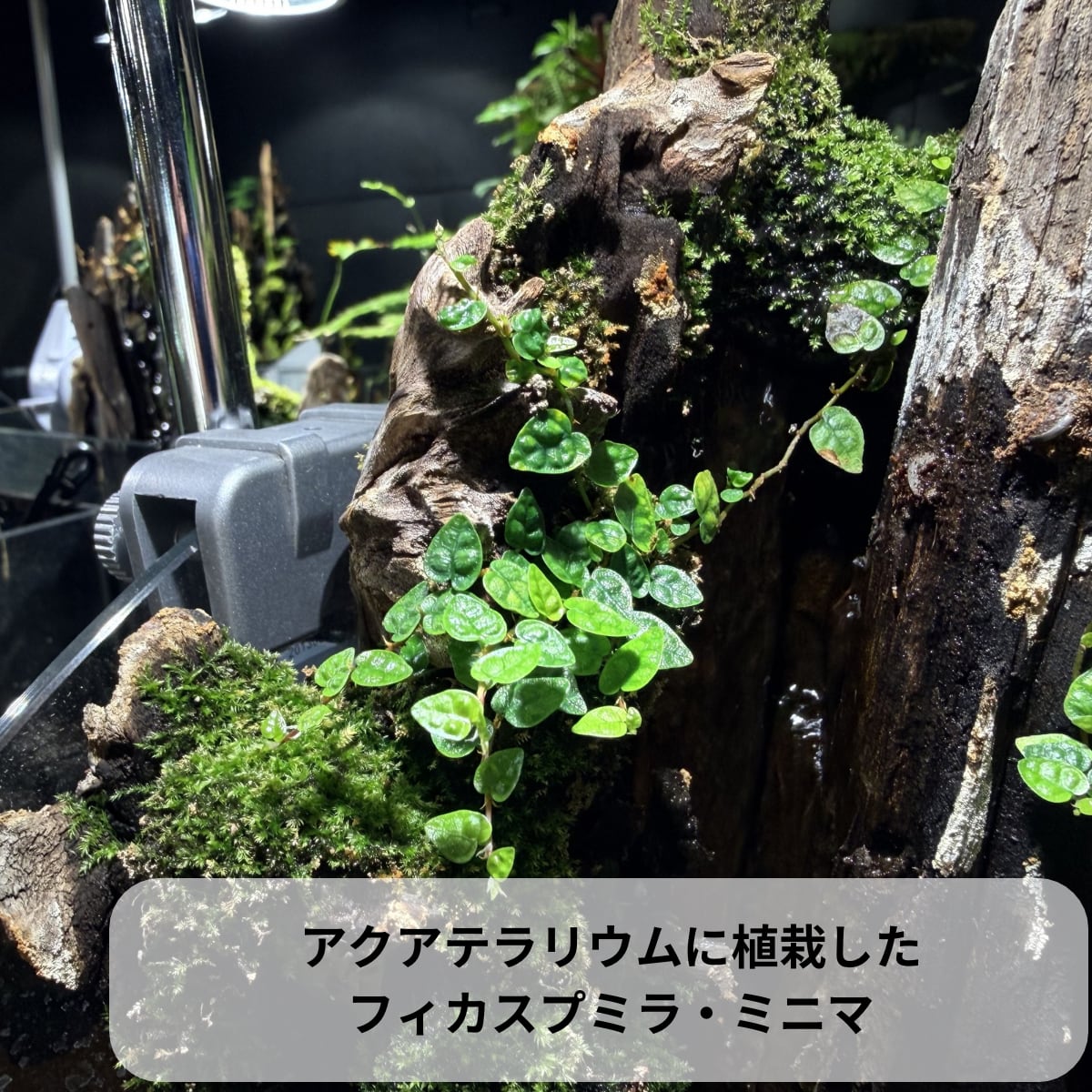 成長すると節から細かい気根を伸ばして流木や石にしっかり活着し、時間とともに自然感あふれる景観をつくり出せるため、アクアテラリウムやパルダリウムのレイアウト素材としてとても人気です。