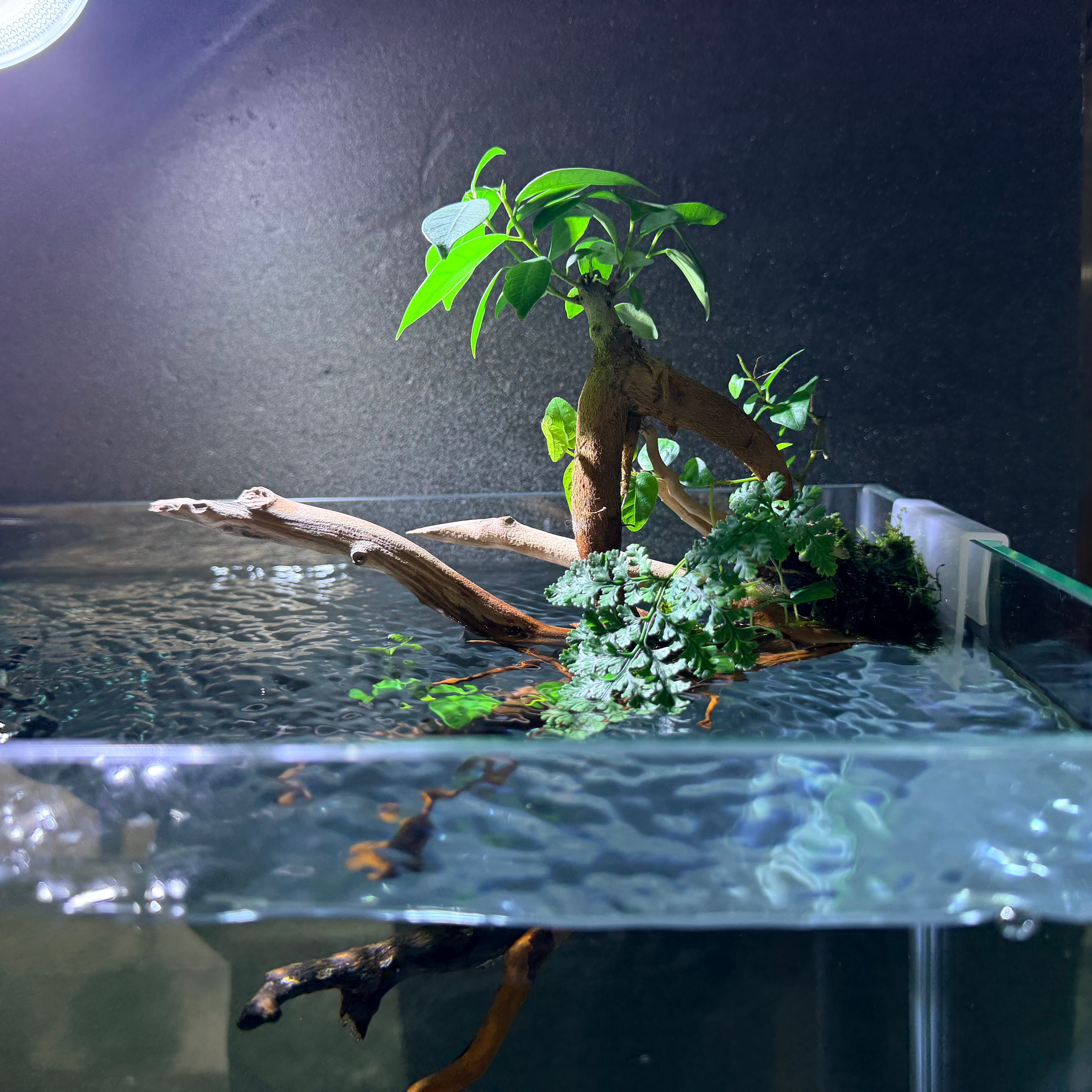 陸上部分の苔や植物には、必要に応じて霧吹きを行ってください。