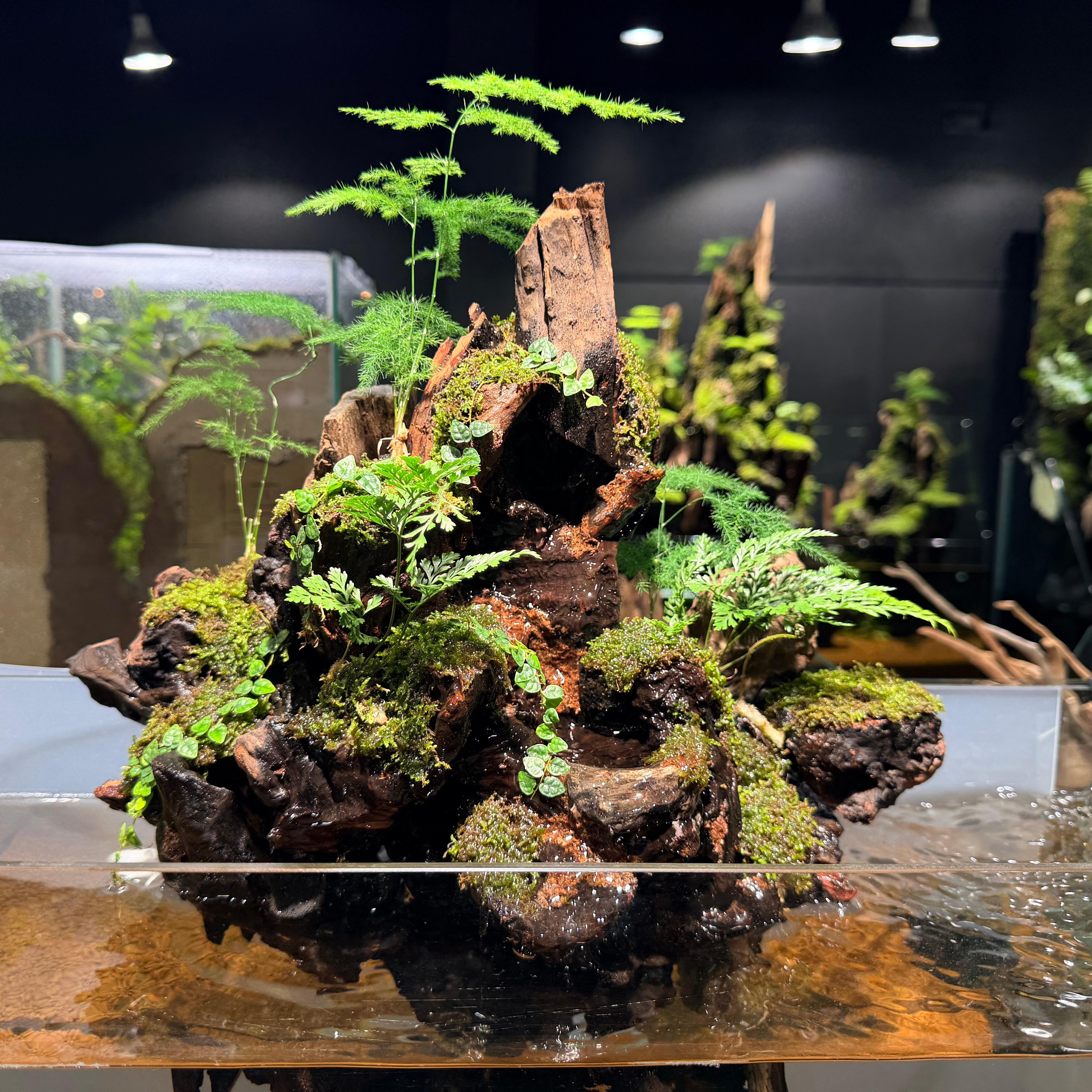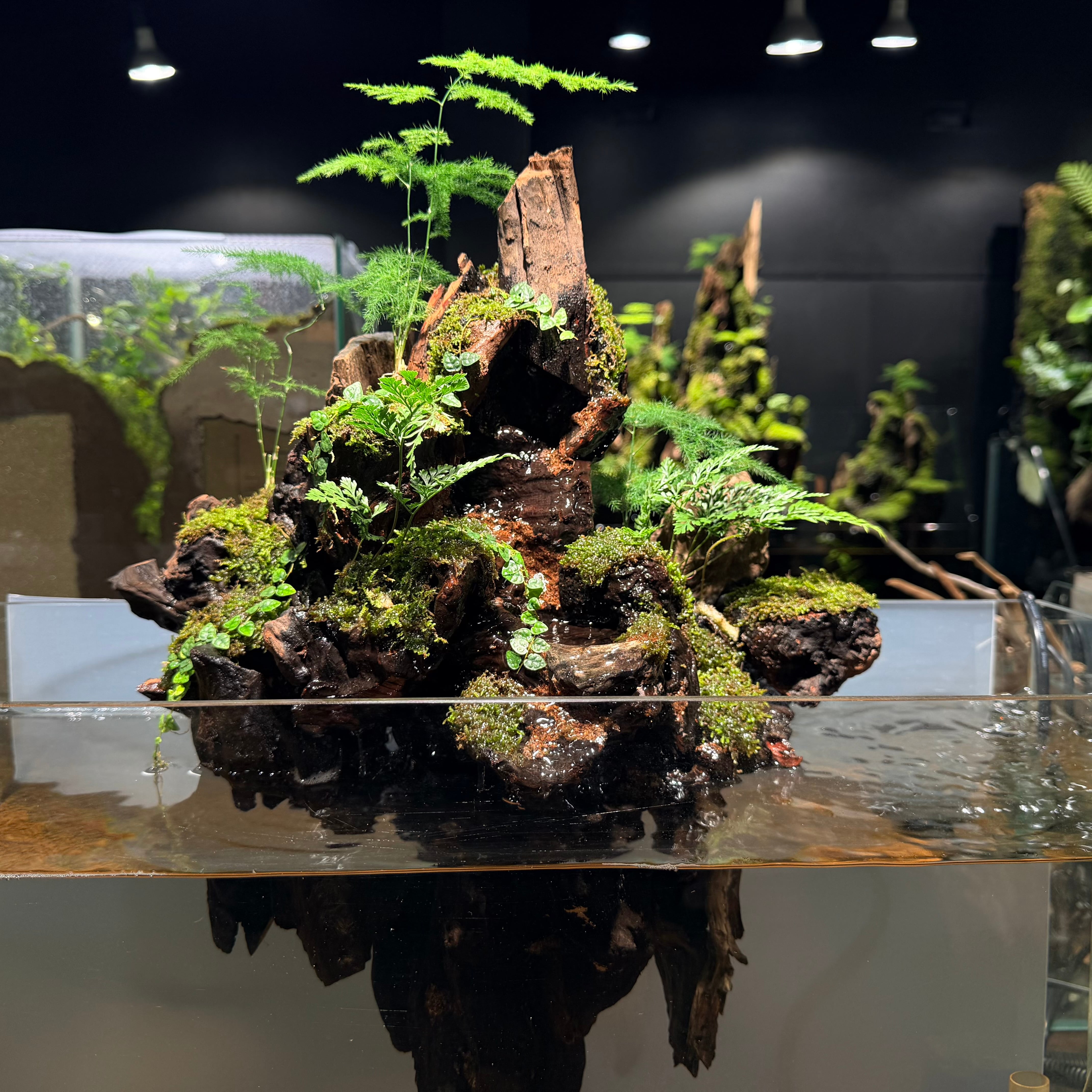 陸上部分の苔や植物には、必要に応じて霧吹きを行ってください。